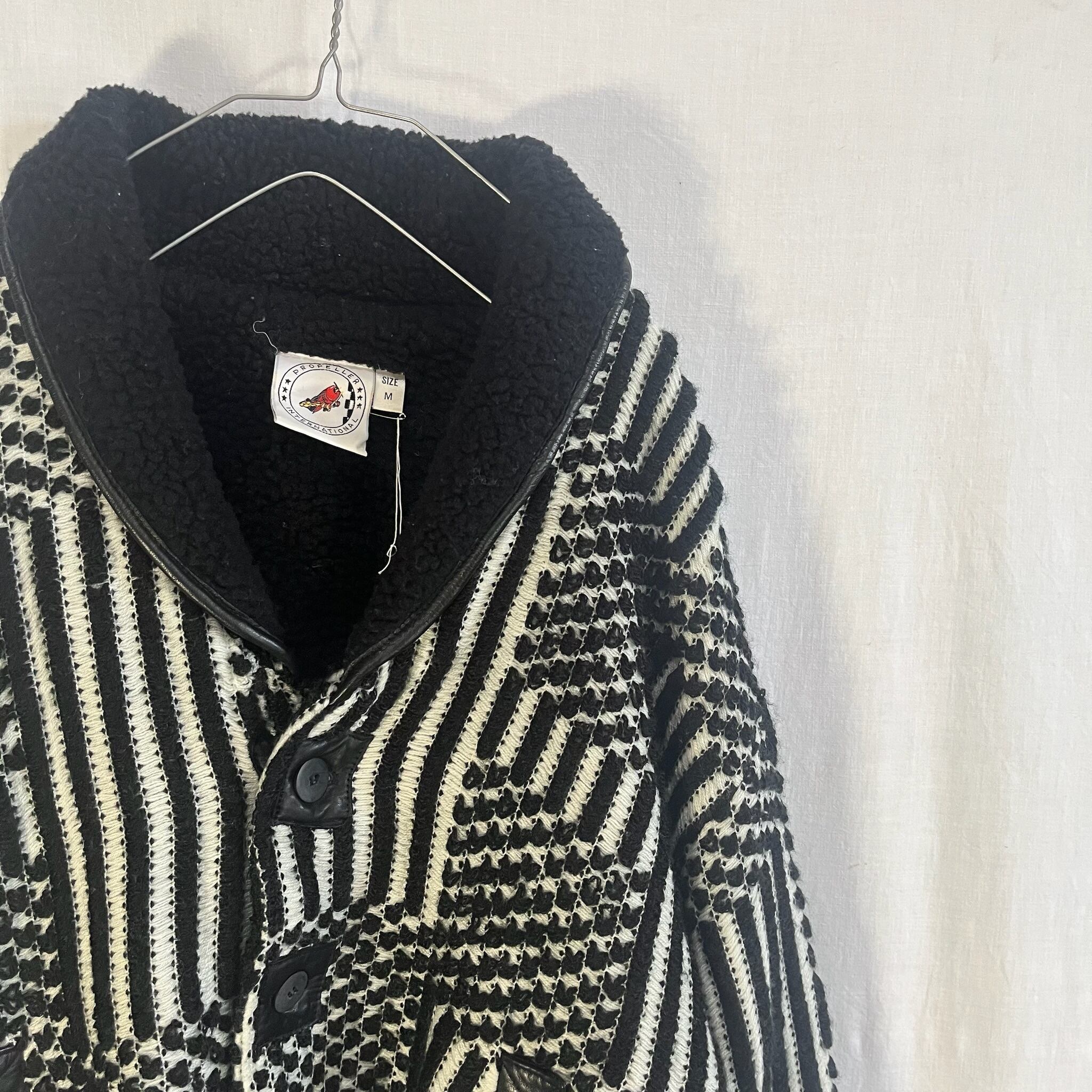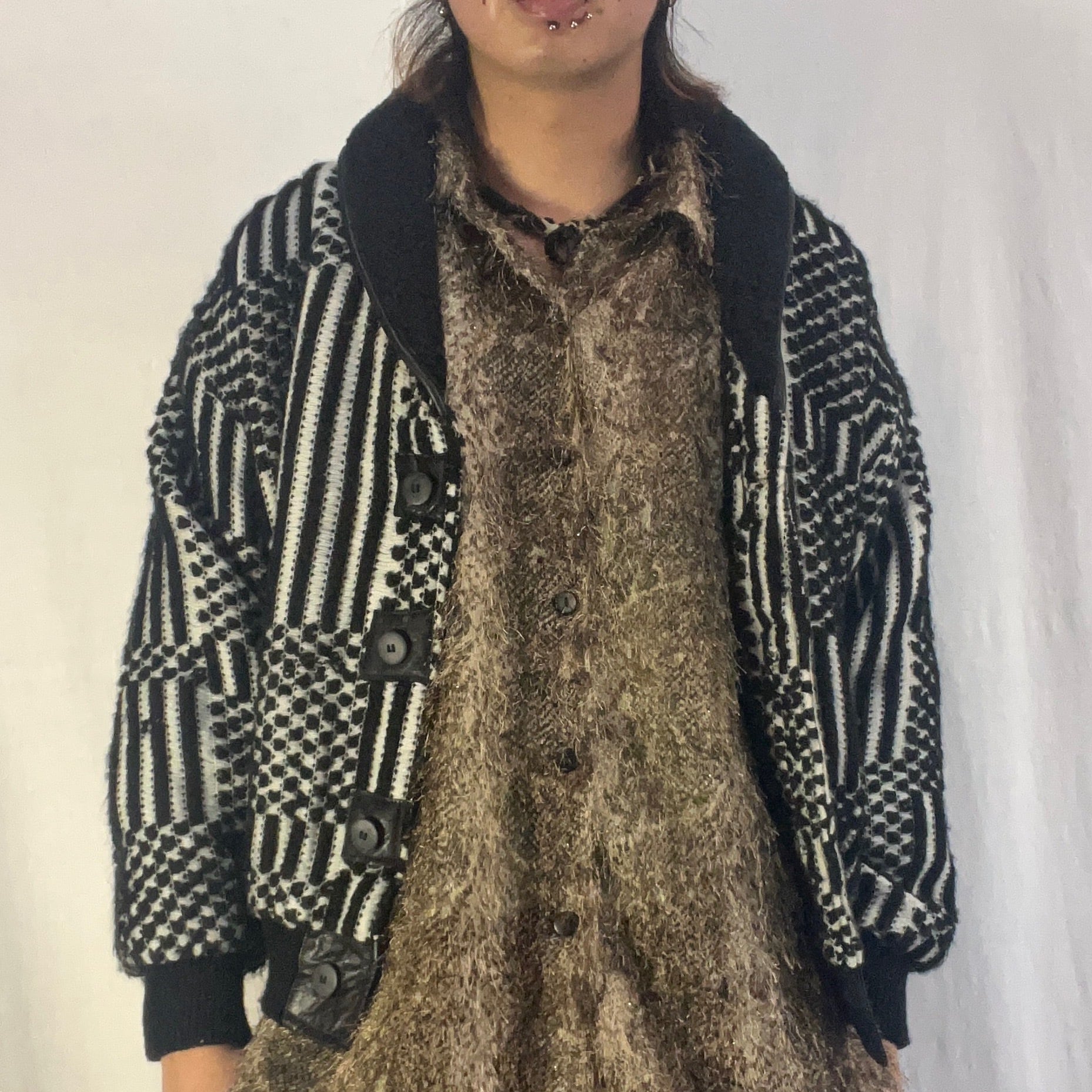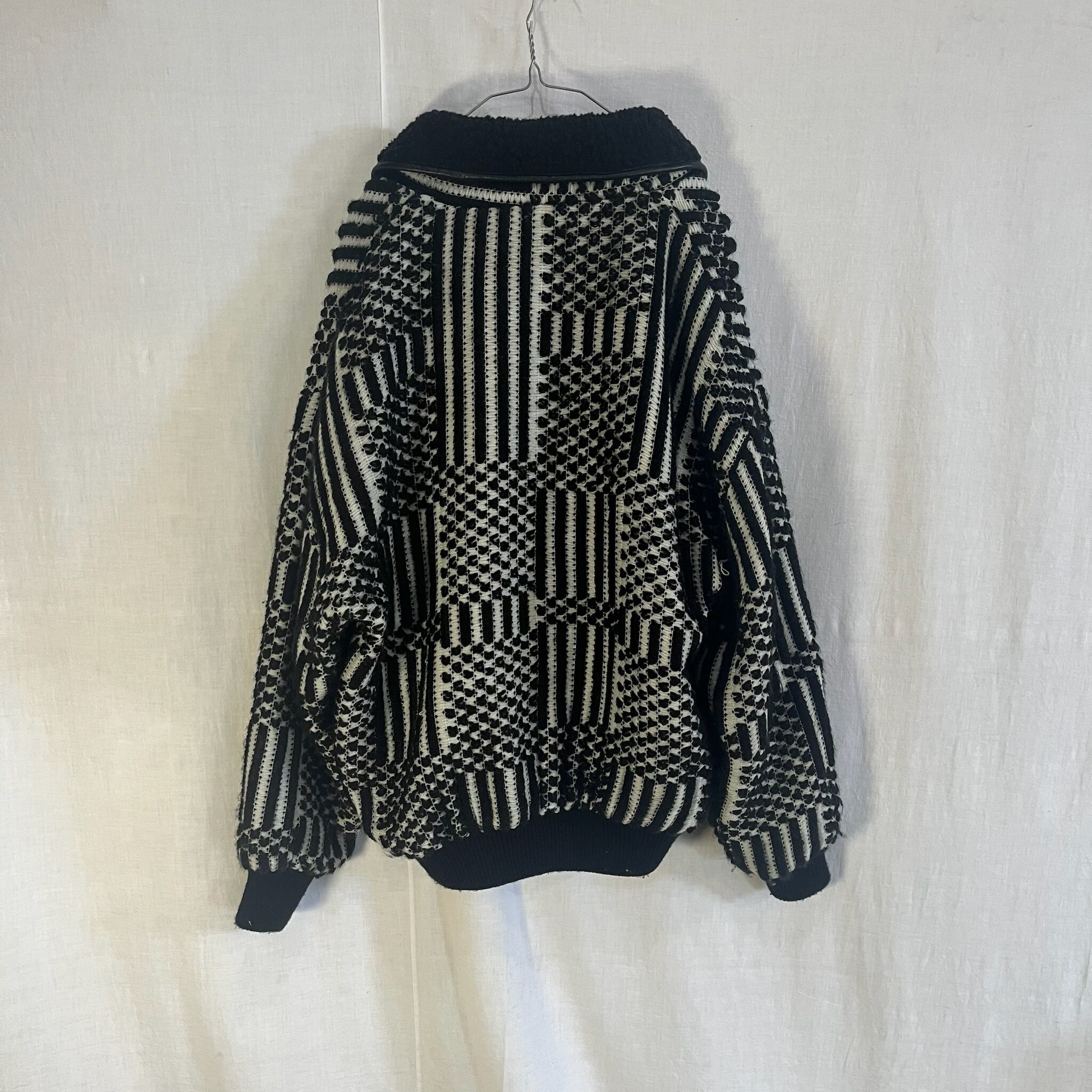 白黒 アクリルニット ジャケット