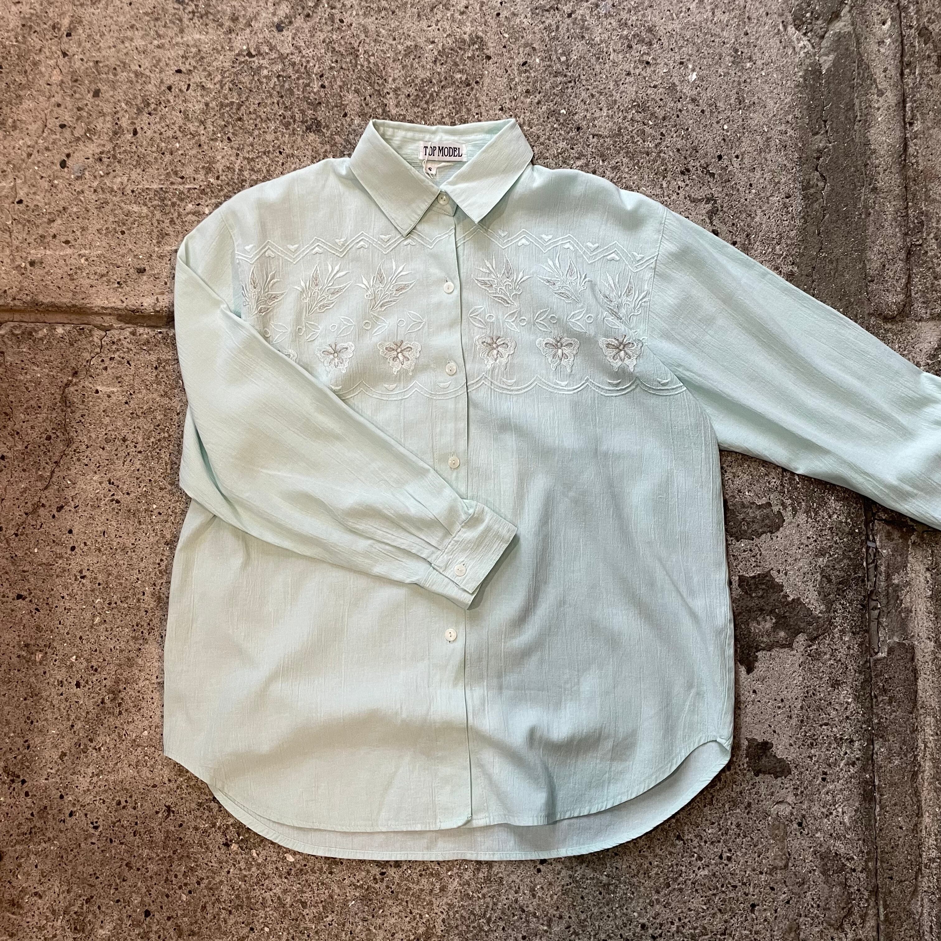 水色 刺繍シャツ