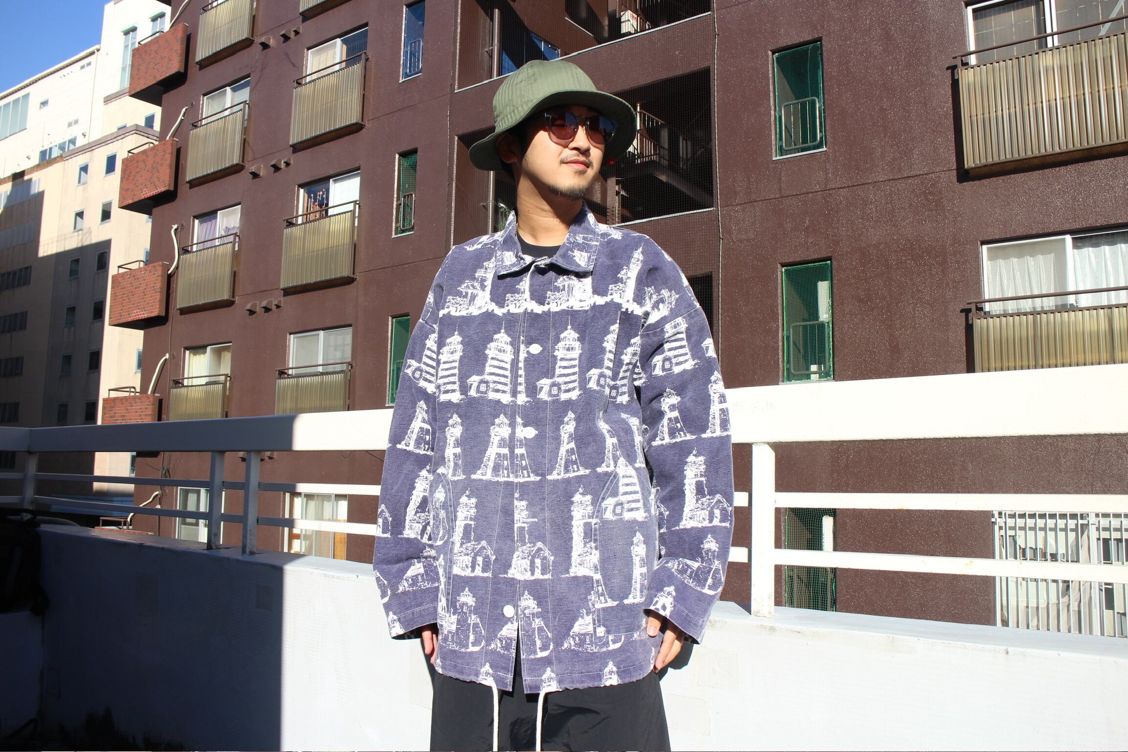 MICHIGAN RAG ネイビー 灯台総柄 カバーオール